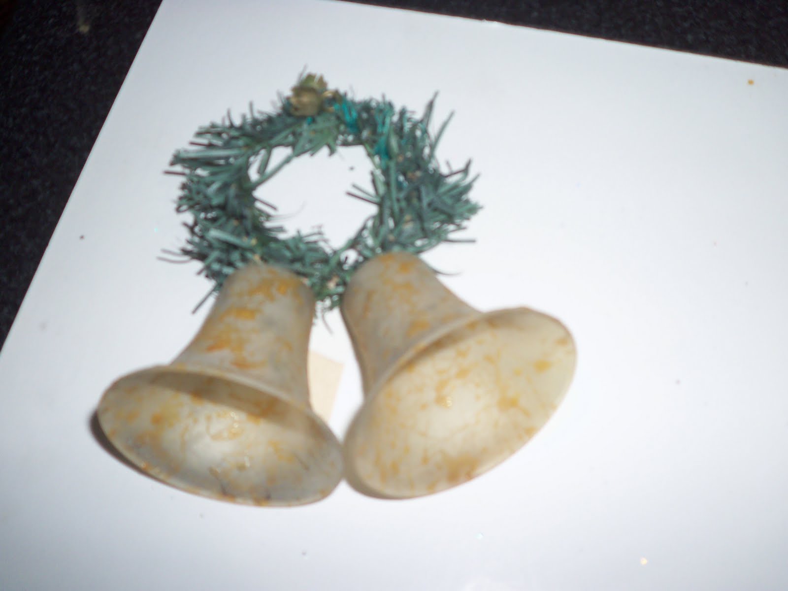AMIGAS!!!!Primero les quiero hacer llegar mis saludos de que hayan pasado en familia una HERMOSA NAVIDAD (tarde pero seguro ya que mi Internet no anda bien) y que el próximo año 2012 nos encuentre unidas en esta amistad blogueril que crece dia y que cruza fronteras con mucho AMOR, AMISTAD, PAZ Y PROSPERIDAD COLMADA DE BENDICIONES para todas!!!! ...Y ahora les quiero presentar mi primer RECICLADO.... Les cuento que estas campanitas son de mi amiga Carmen y las tenia colgadas de una rama en el jardin de su casa..